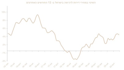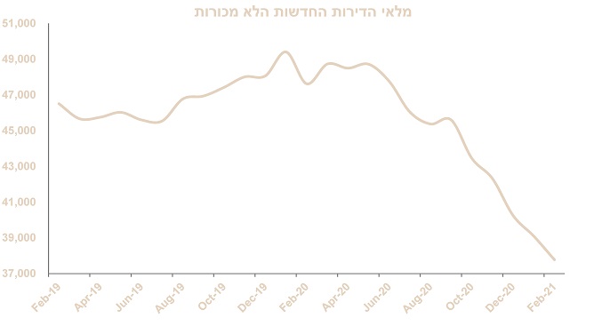 משנת 2020 חלה ירידה חדה במספר הדירות המוגמרות (47.9 אלף) יחסית לגידול במספר משקי הבית, מה שמקטין את מלאי הדירות הפנוי ב- 21% מתחילת 2020 ועד פברואר 21.