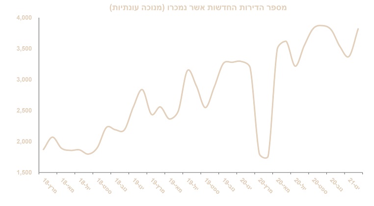 בחודש פברואר מספר הדירות החדשות שנמכרו עלה ב- 13% (20% y/y).